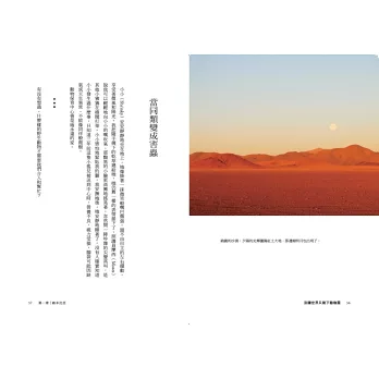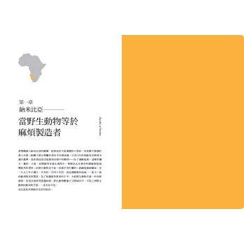 旅遊作家上田莉棋,過去曾在中南美洲的厄瓜多、哥斯大黎加野生動物保育中心擔任志工,也曾前往南非採訪犀牛盜獵問題,並持續關切各種動物議題。為了更深入了解野生動物,也希望更多人了解牠們,她前往非洲進行六個多月的志工之行,陸續在納米比亞、南非及馬拉威三國的動保中心協助。實際站在非洲大地,經歷了一連串出發前未曾預期的震撼教育,透過她的眼睛,我們得以一同看見並理解,物種滅絕的危機絕對是來自於我們人類。
