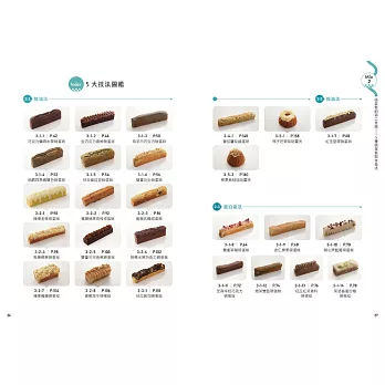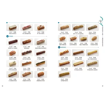 ❶職人精選風味磅蛋糕、❷以水果風味為主的磅蛋糕、❸以根莖類植物提升風味的磅蛋糕、❹鹹食磅蛋糕,每款蛋糕皆有對應技法標示,甜點之路不迷惘。