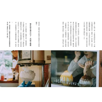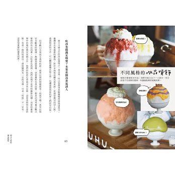 除了吃冰,書中還收錄了淡江大學大眾傳播學系助理教授──精采分享的冰之歷史,一樣不可錯過。臺灣、日本分別是從什麼時候始出現「冰」的?吃冰原本是貴族才有的高級娛樂?日式刨冰是如何走向世界、掀起現象級風潮的?除了梳理飲食歷史及文化脈絡之外,還要帶讀者走一遭在奈良知名的「冰室白雪祭」!