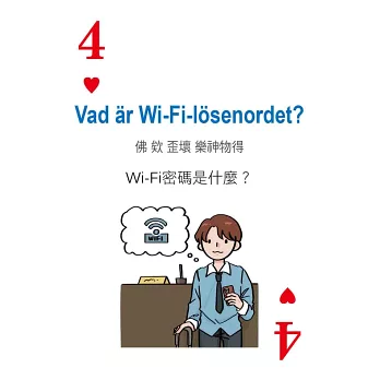 ♥4 Vad är Wi-Fi-lösenordet? 佛 欸 歪壞 樂神物得 Wi-Fi密碼是什麼?