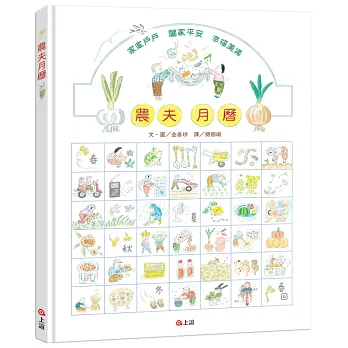「我想透過《農夫月曆》傳達一種不疾不徐,耐心等待的精神,這種取之自然、還之自然的生活方式,讓人與大自然得以和諧共存。正如農夫『時候到了播種,時候未到就耐心等待,再配合時令收成』,我也誠心播下繪畫和文字的種子,順其自然地創作,最終收穫了健康飽滿的繪本果實。謹以農人般誠摯的心,請大家盡情享用。祝福您闔家平安,幸福美滿。」──金善珍