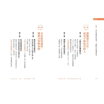 這本書就是教我們學會這項能力,也就是「獨創現場力」!我們都以為「有創意」是天賦、是直覺、是靈光一閃,但面對任何問題現場都能有最佳解的創造者,其實擁有一套清晰可練的底層能力。
