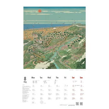 想像自己擁有鳥兒般的翅膀,飛越臺灣碧綠的山林與豐饒的田野。2026年,林業及自然保育署推出全新主題月曆,以《阡陌之森》為核心,呈現臺灣壯闊的「大尺度地景」。月曆以生動細膩的畫面,展現森林、溪流、農田、聚落、埤塘、魚塭、沼澤與湧泉等多樣的棲地類型,帶領讀者一同探索臺灣豐富的自然地貌。同時,藉由突顯特色的動植物資源及相關的棲地保育議題,特別突顯臺灣特色的動植物資源,並關注棲地保育的議題。透過多角度的視覺呈現透過不同觀看角度,從空中鳥瞰、溪流中仰視、海平面眺望等視角,一場跨越空間的觀景之旅即將展開,引領大家一同俯瞰台灣的多元生態。