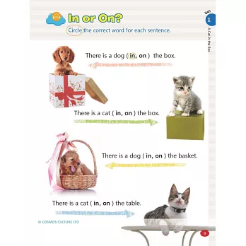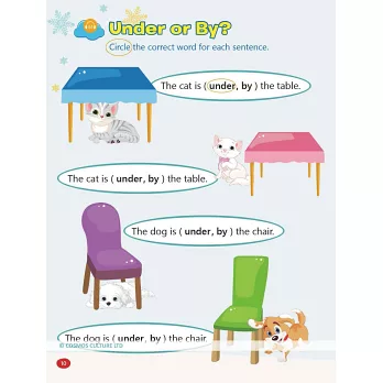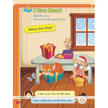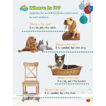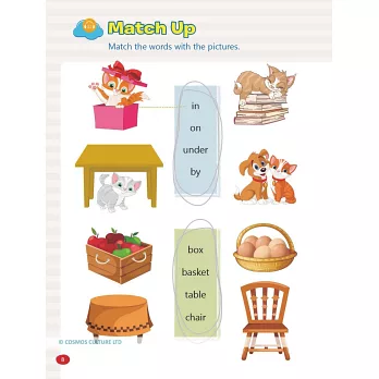 看圖片找答案,或讓孩子以圈選或是連連看的方式選出題目中要求的詞彙。在尋找的過程中,孩子會不斷重複閱讀到核心字彙,自然而然地建構基礎文法與閱讀技巧。
