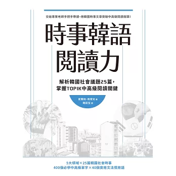 韓國企業如何結合MBTI打造新產品?偶像明星的「機場時尚」為何引發爭議?MZ世代的消費傾向為何趨於兩極化?本書收錄生活、文化、社會、經濟、政治等不同主題文章,讓你學韓文的同時,也能深入了解當今韓國社會的重要議題。