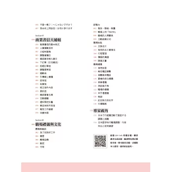 想看得懂、聽得懂,甚至能用得出漂亮的詞彙表達嗎?本書收錄了59種在「會話」、「書信」、「易錯表達」的商用情境與25種「禮儀文化」的介紹,培養專業知識與文化的軟實力。