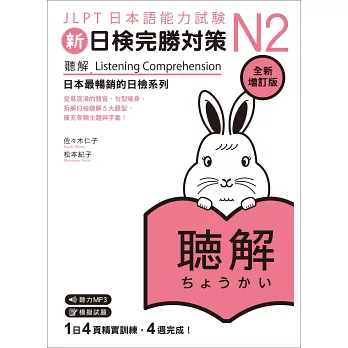 「新日檢完勝對策」系列由「JLPT日本語能力試驗」教材權威佐佐木仁子、松本紀子老師共同執筆,為考生規畫兩個月的應考讀書計畫。全套書籍從N5至N1分級共15冊,扎實奠定〈文法〉〈讀解〉〈聽解〉及〈漢字‧語彙〉四大基礎。