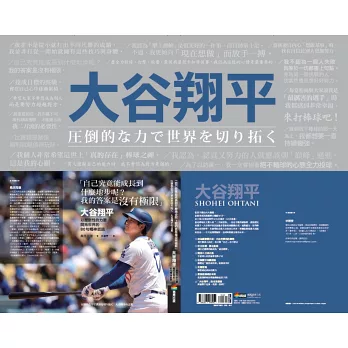 他是棒球史上驚人的「二刀流怪物」,也是不斷突破極限、創造歷史的選手。大谷翔平的話語蘊含著他如何鍛鍊自我、面對壓力、思考棒球未來的哲學。本書帶你走進大谷的內心世界,聆聽他塑造偉大成就的信念──不只是挑戰極限,也同時開創全新的未來。書中每一篇摘錄一句大谷翔平的話語,從話語延伸成小短文,訴說大谷是如何練習、自我成長,秉持什麼樣的精神及想法專注於棒球運動,進而達到目前的高度成就。