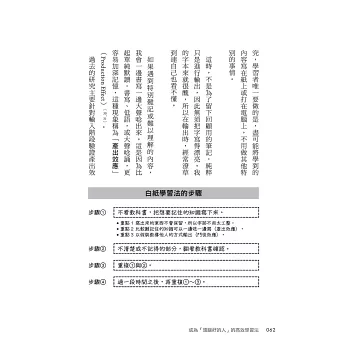 本書凝聚了我所知道最科學、最有效學習法的精髓。當然我的成功並不是偶然,也不是想要藉由本書炫耀自己的成功。只是想要盡可能告訴每一個人:「嘿!各位,學習原來應該這樣做才對!」