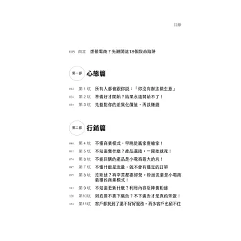 心態建立.選品策略.內容經營.流量布局.客戶服務.通路規劃.營運管理