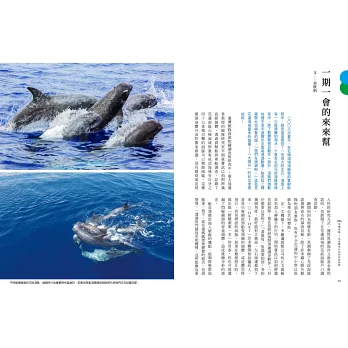 國際間,海豚是海洋館裡最常見的表演者,被捕捉、訓練、展演的身影,與牠們在浪間飛躍的自由模樣形成強烈對比。如今,隨著全球動物福利意識的抬頭,圈養鯨豚在臺灣正逐步走向退場。人類的選擇與態度,正深深影響著這些生命被對待的方式。若我們期待看到一片自由健康的海洋,就必須承擔守護的責任。從捕捉與圈養的歷史,到動物福利與野生保育的反思,這本書讓我們看見,人與鯨豚的關係不應是單向主宰,而是一場需要謙卑與尊重的對話。願透過這本書,讓更多人理解尊重生命權的意義,並一同努力,讓我們的下一代仍能在蔚藍大海中,看見花紋海豚優游的身影。