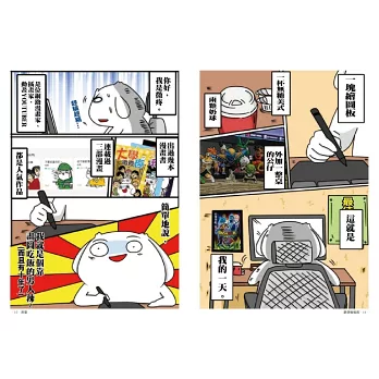 記得第一次看到他畫的圖,就覺得他真的很有梗,你只要看過就很難忘記對他的作品的印象。雖然因為他當年非科班,畫圖技巧剛在學習沒有很專業,但說真話,我那時候看到他的創作時,心裡想的是:可惡!這傢伙怎麼可以那麼好笑?為什麼他還沒爆紅啊?出版社還不找他出書!是有錢不想賺嗎?