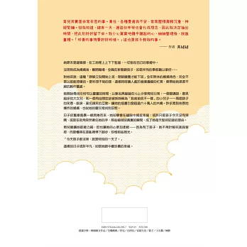 ◆真佩服作者,怎麼能將那些微小的幸福捕捉得這麼完整,並好好地保存下來。本來可能輕易被忽略的情感與小故事,卻讓我回想起自己的經歷,忍不住露出微笑。