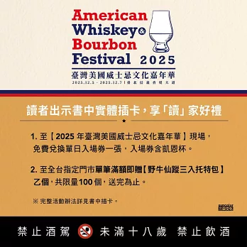 首刷附贈【臺灣美國威士忌節「讀」家好禮】+【作者燙金簽名】