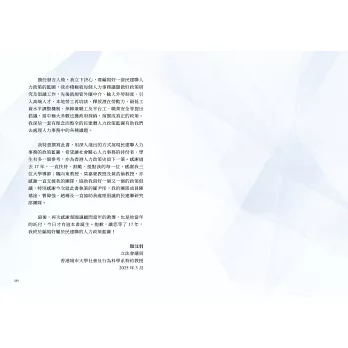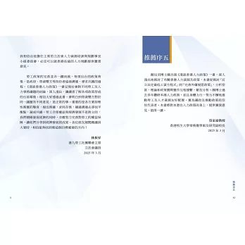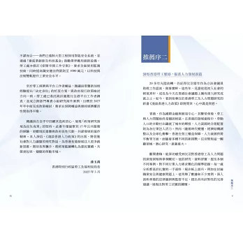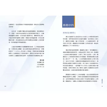 此書不僅梳理香港人力政策的發展歷程,更以專業視角提出前瞻建議……涵蓋議題從職業安全、人才引進到家庭友善措施,均與政府施政重點緊密呼應。——香港特別行政區勞工及福利局局長 孫玉菡