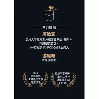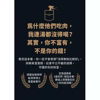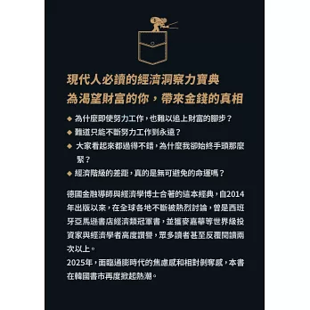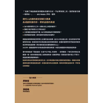 如果你想追求更穩健的經濟生活、在市場波動中建立堅實的經濟觀念、理解全球富豪都知道的貧富差距祕密,本書就是你的必讀經典,幫助你理解金錢本質,守好自己的財富!