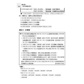在每個重點下,本書提供了「練試力」題型,幫助學生理解分錄及計算過程。接著,通過引用精選的「歷屆試題」,學生能夠發現考試題型通常僅涉及數字、說法和年度的變化,而解題方法基本相同。這一策略體現了「知己知彼,百戰百勝」的原則。除了研讀重點內容外,學生還應利用歷屆試題演練,以了解考試的出題方向,從而能夠迅速掌握學習要點並實現突破。