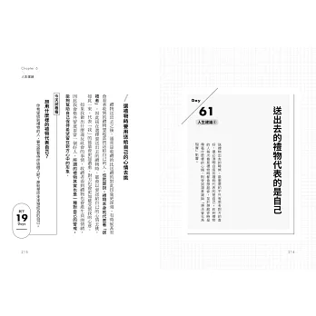 本書獨家研發出「80天人生修復計畫」。每天提出一個問題,只要思考答案,並寫下三行筆記,就能逐漸修正bug,讓潛意識成為你實現目標的強大助力。人生是反覆挑戰的結果,而你所有的努力都不會白費,當你走完80天的豐富歷程,你將會發現:人生不是做不做得到,而是有沒有去做而已!