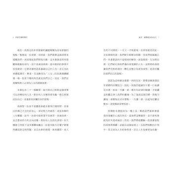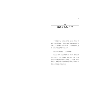 本書涵蓋了數十年來我與學生、個案、精神分析對象一同工作的總結,我期盼它能幫助每位讀者建構自己的人生,更了解自己的人生目的,不再依循外界的標準,而是容許自己真實地活出自我。