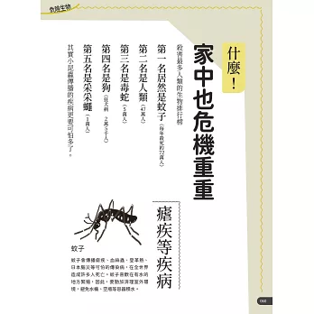 邀 請知名插畫家及漫畫家:五月女ケイ子、室木おすし、橫山了一,透過趣味插圖,讓生硬難讀的知識也能輕易吸收,升級自身的危機判斷力,透過學習→預測→遠離,才能趨吉避凶!
