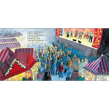 烤栗子、蜂蜜酒、土耳其軟糖、雪夜燈火⋯⋯曾赴斯洛伐克學習石版畫的降矢奈奈,以其融合日本傳統與現代西洋技法的獨特畫風,細膩描繪出歐式耶誕市集的熱鬧景象;柔和的色調與精緻的細節流露出異國風情與童話感,完美捕捉了耶誕節的冬日氛圍,讓讀者在閱讀中能強烈感受節慶的歡樂與溫暖。