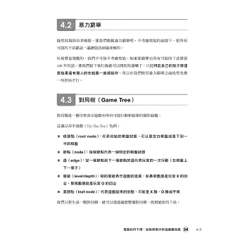 如果你曾因論文艱澀或網路資料零散而裹足不前,本書將是最親民的入門橋樑,幫助你循序漸進建立完整觀念,最終挑戰電腦對局競賽,實現打造你的遊戲 AI。