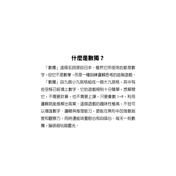 「數獨」(SUDOKU)是風靡全球的時尚數字遊戲,玩家遍布美國、歐洲、亞洲及澳洲,超過三十多個國家的報紙,都看得到這些九宮格子的蹤影。數獨被國際媒體冠以「全世界傳染速度最驚人的填字遊戲」,以及「21世紀的魔術方塊」等封號,可見其流行程度。