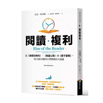 閱讀推廣者、圖書行銷代理機構創辦人尼克.哈奇森(Nick Hutchison),迄今已經閱讀了超過四百本自我成長暢銷書。閱讀不只幫助他戰勝社交焦慮、成功創辦屬於自己的事業,更讓他在生活中的方方面面都有所成長。因此他相信,「閱讀+實踐」就是讓書本改變人生的硬道理!每天十五分鐘,就能透過「閱讀複利」累積起驚人的改變。本書將不藏私公開: