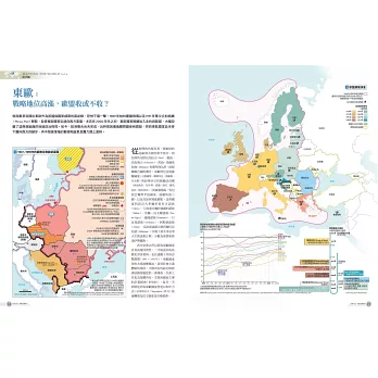 平均每張地圖都涵蓋超過5種資訊(如政治、人口、經貿、軍事、地形、文化等),還能呈現不同尺度資訊之間的相互影響,內容豐富多元,大開本讓地圖細節更清楚呈現,穿線膠裝可攤平更好翻閱。
