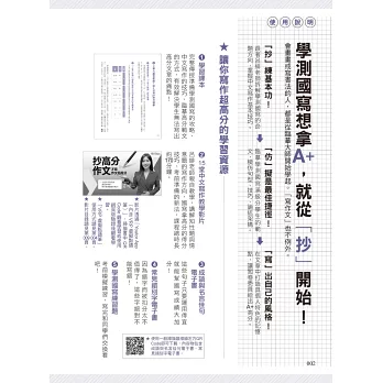 先從學習課本《抄高分作文》Part 1開始,搭配呂緋老師的教學影片,掌握寫作的關鍵技巧,打好基本功。