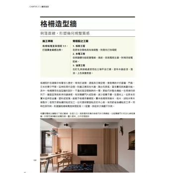 本書系統性拆解「天花板、地坪、牆面、門窗、櫃體」五大空間關鍵構件,整理超過50種常見造型設計,搭配材料搭配邏輯、施工細節與大樣圖,讓讀者能快速了解設計語彙,掌握尺寸與工法,降低施工風險,提高現場溝通效率。