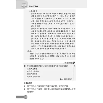 對於沒有法學基礎的考生來說,法律文字用語專業艱澀,且刑法規定細微,一字之差選錯答案,就會錯失考取的契機。為此,書中特設實務見解、學說爭議、重要觀念等專欄,為考生解惑,指點迷津,增強應戰實力,做到解題快、狠、準!