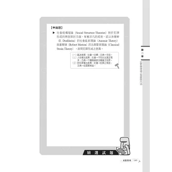 全書依據命題大綱編排章節,條理分明,每章皆搭配圖表整理,幫助讀者建立系統性觀念。對於易混淆理論特點與概念,也特別做出橫向比較,幫助你統整記憶,強化理解。