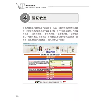 最後,第五章結合雲端學習系統,包含速讀訓練、測驗模式、情境動畫、影音課程、口說與聽力練習,讓你隨時應用、立即上手。