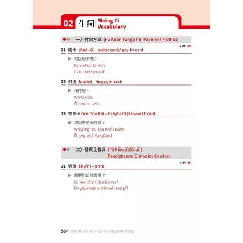 精選貼近生活的情境對話,如「怎麼在便利商店結帳」、「怎麼在臺式餐廳點餐」、「怎麼在臺灣買捷運票或公車票」,簡單好學,即學即用!