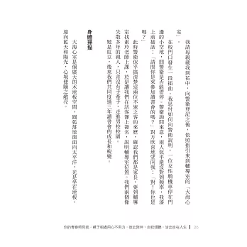 所以,當你「開完讀書會」後,記得牽起心裡那孩子的手,外出走一走,跟他聊聊沿路風景。我的孩子很開心我這麼做了。