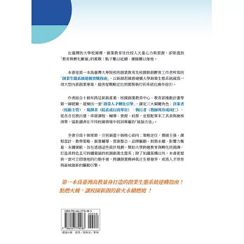 我深信,每一所大學的資源結構、治理文化與學生樣貌都不盡相同,因此創業教育不可能有放諸四海皆準的答案。這本書所提供的,不是單一模板,而是一套「組裝方法」。因此您在閱讀時不一定需要從頭到尾逐章閱讀,可以依自身任務與校內情境選讀章節,搭配章末工具表與檢核清單,完成一次又一次的小幅迭代。