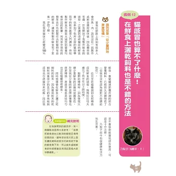 ◎從基礎營養到疾病應用,一本全收錄:詳細解析貓咪所需營養素及其功效,並以病例實例對照說明飲食如何改善體質。