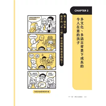 ◎書中聚焦於台灣的「發展遲緩」與日本的「発達障害」概念差異:台灣強調的是「發展速度的落後」與「早期療育」,而日本則以「發展特質」、「発達凸凹(發展的高低起伏)」來看待孩子,這樣的不同思維,讓多語、多文化環境的孩子不再只是被貼上診斷的標籤,而是有機會被看見其獨特的發展軌跡。