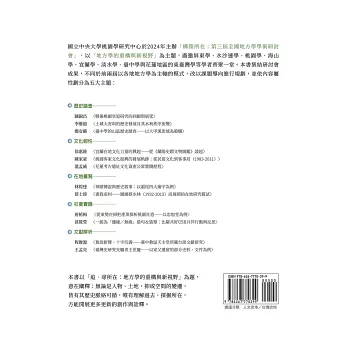 國立中央大學桃園學研究中心於2024年主辦「構築所在:第三屆全國地方學學術研討會」,以「地方學的重構與新視野」為主題,廣邀屏東學、水沙連學、桃園學、海山學、宜蘭學、淡水學、臺中學與花蓮地區的東臺灣學等學者專家齊聚一堂。本書集結研討會成果,不同於前兩屆以各地地方學為主軸的模式,改以課題導向進行規劃,並依內容屬性劃分為五大主題: