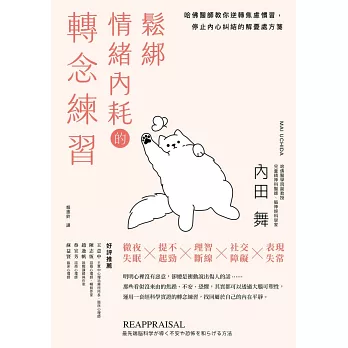 哈佛醫學教授暨腦神經科學家內田舞深知情緒壓力對身心的破壞力,他認為大腦具有非常大的可塑性,若能進一步地利用這個特性,運用「情緒」「想法」「行為」三面向,反覆練習有效將負面心情調整為正向思維的轉念方法,人生將從此變得踏實與篤定。