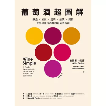 每一位認為葡萄酒高不可攀且複雜難懂的人,都該讀讀這本書!在不到300頁的篇幅中,奧爾多.索姆以機智幽默又精湛的教學方式,為讀者開啟葡萄酒世界的大門。這本《葡萄酒超圖解》堪稱是業界傳奇人物的完美入門指南,必定會成為新世代葡萄酒愛好者的必讀經典。——紐約法式餐廳Racines NY經理合夥人暨侍酒師/帕絲卡琳.勒佩爾蒂耶(Pascaline Lepeltier)