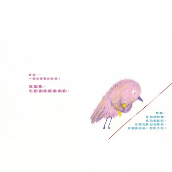 有一天,粉紅色小鳥要送藍色小鳥一條肥蚯蚓,