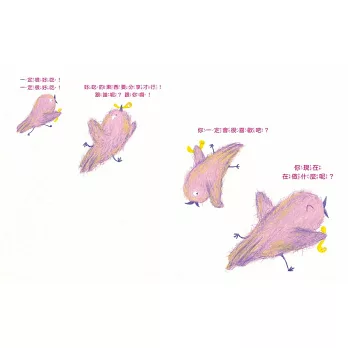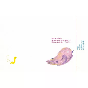 有一天,粉紅色小鳥要送藍色小鳥一條肥蚯蚓,