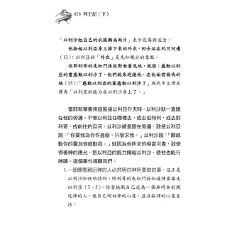 5.以利沙與暗利王朝(王下八7 至十三章):記載暗利王朝結束,以利沙逝世。