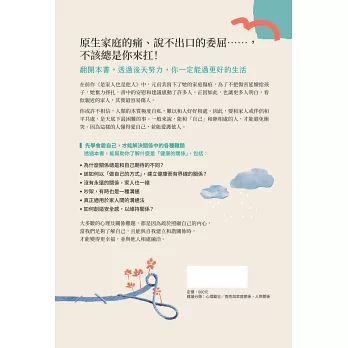 我之所以撰寫這本書,是希望告訴各位讀者,如何在內心的疾病如雜草般深深扎根之前,預先做好管理。一切疾病的最佳治療方法就是「預防」,心理健康亦是如此。我們都可能因為過往的經歷或遺傳傾向而遭遇困難,就像糖尿病或癌症等身體疾病,通常都有很強的家族遺傳傾向,心理疾病亦然。然而,遺傳基因是否會表現出來,取決於環境因素。同時,透過後天的努力,我們絕對能過上更好的生活。