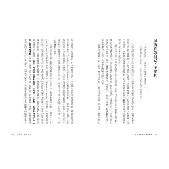 就像為了維持身體健康,就需要持之以恆地運動、攝取營養均衡的食物且服用適合的營養品一樣,心靈也需要悉心照料,才能變得健康。不能忽視那些長期占據在心中的傷口,而是要予以治療;為了能做出良好的思維和行動,第一步就是要懂得妥善照顧自己。每天都為內心澆水、拔除雜草、用心修整,才能讓心靈變成一座美麗的庭園。這正是與自我和諧相處的方式。