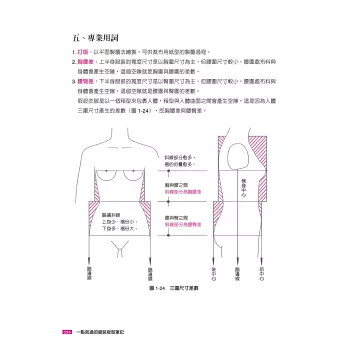 本書再彙整上半身服裝版型設計立體化基礎方法,以教學資料系統完備的日本文化學園大學之「文化原型」學理基礎,參照個人多年的實務經驗,嘗試將裁剪版型技術以圖例說明轉化為可供版型研究參考的資料。同學們畫版時遭遇的問題點,也都盡量在此書中提出解答,探討版型皆以女裝為主,男裝與童裝僅提供原型製版。這本書是我的版型教學筆記,專門給初學者看的入門書,未能詳盡之處,敬祈各方不吝指正。