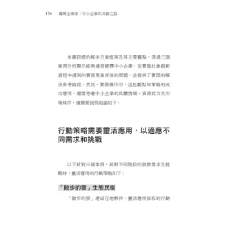 本書研提的解決方案框架及其主要觀點,透過三個案例分析顯示能夠適度解釋中小企業在實施社會創新過程所遇到的實務現象,以及其背後的問題,並提供了實際的解決參考路徑。然而,實際操作中,這些觀點和策略的成功應用還需考慮中小企業的具體情境、資源能力及市場條件。
