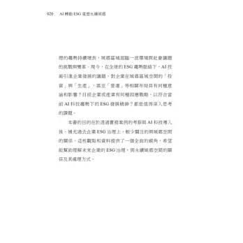 謝謝願意拿起這本書的你,也希望它能成為你面對ESG 與AI 議題時,一本能提供參照但不設限的地圖。
